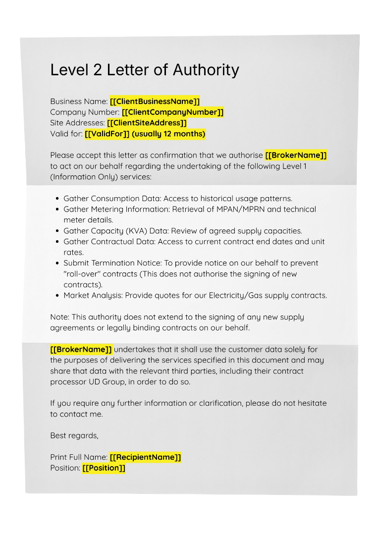 Save time creating documents from scratch with our industry standard Level 2 Letter of Authority template.