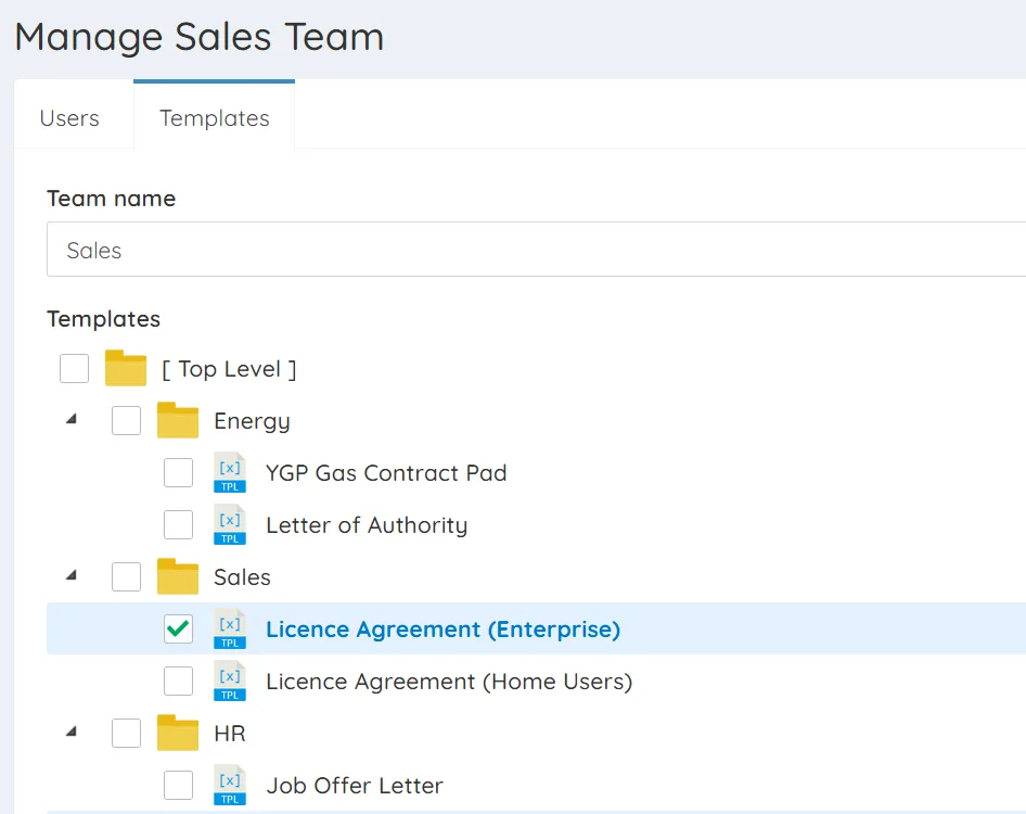 Ensure compliance by granting specific departments access to relevant templates, enhancing security and efficiency across your organisation. Think Sales, HR, Operations, Finance and more.